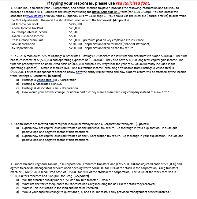 If Typing Your Responses Please Use Red Italicized Chegg Com